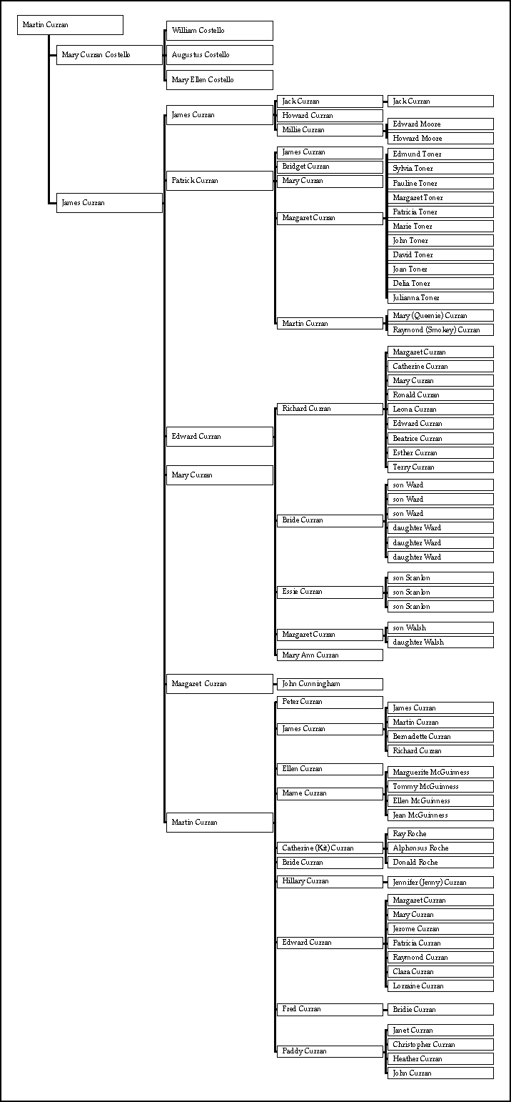 The names in red indicate the people I am directly descended from. These Currans live on, or are from, the Avalon Peninsula of Newfoundland, Canada
